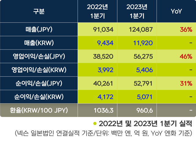 넥슨이 대표 게임들의 흥행으로 올 1분기 분기 역대 최대 실적을 달성했다.넥슨은 2023년 1분기 매출 1조 1920억원(엔화 1241억엔), 영업이익 5406억원(엔화 563억엔)을 기록했다고 11일 공시했다. 이는 전년 대비 각각 36%, 46% 증가한 수치다.이는 FIFA 온라인4와 반등에 성공한 중국 던전앤파이터의 흥행 효과로 풀이된다. 블루 아카이브의 글로벌 성과 또한 매출 증가에 일조했다.넥슨의 매출은 방학과 명절 연휴가 있는 1분기와 3분기에 상대적으로 높아지는 경향이 있다. 매년 1분기 넥슨 PC 매출은 지난해까지 완만한 성장세를 그려왔으나 2023년에 들어 전년동기 대비 37% 성장해 8940억원(엔화 931억엔)을 기록했다.지난해 1분기부터 5분기 연속 분기별 최고 실적을 기록 중인 FIFA 온라인4가 1분기 PC 매출을 견인했다. FIFA 온라인4는 지난해 말 월드컵 효과로 개선된 지표를 유지하며 다시 한번 실적 상승을 이뤄냈다.중국지역 던전앤파이터 또한 1분기 PC 매출 상승의 주역 중 하나다. 지난해 4분기부터 게임 내 밸런스를 최적화하고 중국 유저들과의 소통을 촉진하기 위한 노력을 지속해온 결과, 춘절 패키지 판매가 전망치 이상의 호조를 띄며 매출 증가로 이어졌다.모바일 매출 또한 전년동기 대비 33% 증가해 최대 매출 기록 경신에 힘을 보탰다. FIFA 모바일이 강한 상승세를 보이며 전망치를 상회하는 실적을 거뒀다. 블루 아카이브가 메인 스토리 업데이트와 신규 캐릭터 출시 등에 힘입어 모바일매출 상승에 기여했다.지역별로는 국내 매출이 전년동기 대비 36% 증가한 6238억원(엔화 649억엔)을 기록하며 안정적인 성장세를 유지했다. 2021년 주춤했던 중국 매출은 2022년에 반등하기 시작해 올 1분기 매출이 전년동기 대비 45% 증가한 4138억원(엔화 431억엔)을 기록하며 완연한 회복세를 나타냈다.일본지역은 블루 아카이브 출시 2주년 기념 업데이트 성과에 힘입어 전년동기 대비 29% 증가한 347억원(엔화 36억엔)의 매출을 기록하며 전망치를 상회했다. 북미 및 유럽지역에서는 메이플스토리와 블루 아카이브의 성장으로 전년 대비 10% 성장한 495억원(엔화 52억엔)을 기록했다. 동남아 등 기타지역에서도 블루 아카이브가 호실적을 거두며 지난해보다 24% 성장한 701억원(엔화 73억엔) 매출을 기록했다.넥슨은 오는 2분기에도 라이브 서비스 타이틀의 좋은 흐름에 신작 게임들이 가세하며 연초의 좋은 흐름을 이어갈 전망이다.먼저 지난 3월 30일 론칭한 프라시아 전기의 매출이 온기 반영되며 2분기 매출에 힘을 보탤 예정이다. 넥슨게임즈에서 개발 중인 베일드 엑스퍼트는 오는 5월 중 스팀 얼리 액세스를 실시한다. 더 파이널스와 넥슨게임즈에서 처음으로 선보이는 PC&콘솔 멀티 플랫폼의 루트슈터 장르 게임 퍼스트 디센던트도 연내 출시를 목표로 하고 있다.또 넥슨의 대표 IP 중 하나인 마비노기의 감성을 모바일 플랫폼에 맞춰 새롭게 재해석한 MMORPG 마비노기 모바일, 오로지 칼과 창 등 냉병기만으로 끝없는 대규모PvP를 즐길 수 있는 워헤이븐 등 다양한 신작들이 연내 출시될 예정이다.오웬 마호니 넥슨(일본법인) 대표이사는 “올 1분기 넥슨은 자사가 보유한 글로벌 프랜차이즈의 우수한 경쟁력과 지속적인 성장 가능성을 입증했다”며 “현재 서비스하고 있는 강력한 프랜차이즈에 개발 중인 다수의 신작이 더해진다면 앞으로도 좋은 결과를 기대해볼 수 있을 것”이라고 전했다.
