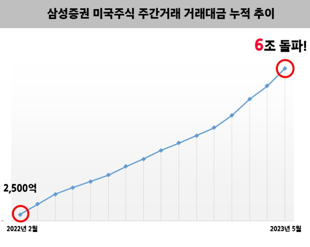 삼성증권은 업계 최초로 지난해 2월 개시한 미국주식 주간거래 서비스의 누적 거래금액이 6조원을 넘어섰다고 27일 밝혔다.지난 5월부터 급증하기 시작한 미국 주식 주간거래 거래대금은 계속 상승세를 이어가고 있다. 실제 지난해 동월 대비 일간 평균 거래대금이 2배 이상 증가했다.특히 5월 25일 하루 동안 거래된 미국 주식 주간 거래 거래대금은 약 810억원(약 6230만달러)로, 올해 일평균 거래대금인 248억원 대비 3배가 넘는 큰 금액이다.이후로도 26일(약 316억원), 30일(717억원) 역시 거래대금이 늘어나면서 5월 이후 주단위 거래량은 30.5%씩 상승했다.지난 5월 30일은 미국 부채한도 협상 관련한 리스크가 일부 해소된 날로, 경기 침체 전망으로 미국 주식 시장에 등을 돌렸던 서학개미의 '턴어라운드' 현상을 엿볼 수 있다는 분석이다.역대 세 번째로 미국 주식 주간거래가 많이 이뤄졌던 날은 지난해 2월 24일, 그 다음으로는 올해 3월 17일과 3월 13일로, 각각 러시아-우크라이나의 지정학적 이슈 본격화, 미국 대형 은행의 퍼스트 리퍼블릭 은행 지원, 실리콘밸리은행(SVB) 예금 전액 보호 발표 등 이벤트가 거래대금에 영향을 준 것으로 보인다.5월 25일에 미국 주식을 낮에 거래한 고객을 특성별로 분석한 결과 50대와 60대의 거래대금이 전체 대비 각각 29.5%, 22.0%로 이 중 절반가량은 PB를 통해 거래한 것으로 나타났다.실적 발표 이후 주간 거래 이용자의 엔비디아 평균 매수가는 365.89달러로 그 날 저녁 정규장의 종가(379.80달러)를 기준으로 하루만에 4%에 가까운 수익을 거뒀다.엔비디아의 실적 발표 직후 발빠르게 대응한 국내 서학개미들이 미국 현지 투자자보다 높은 수익을 거뒀을 것으로 분석된다.5월 25일 주간 거래 서비스를 통해 가장 많이 거래된 종목은 엔비디아로 총 거래대금의 49.9%를 차지했고, 마이크로소프트, 테슬라, Advanced Micro Devices(AMD), Direxion Daily Semiconductors 3배 ETF(SOXL) 등이 뒤를 이어 엔비디아 발 훈풍에 따른 반도체 관련 주요 거래 종목에 이름을 올렸다.이날 엔비디아의 주가는 24.37% 상승했고, AMD의 주가도 11.16% 올랐다.회사 관계자는 "기준 금리 인상과 경기 침체 우려 등으로 미국 주식 시장을 떠나있던 서학개미가 다시금 미국 주식 시장으로 머니무브하고 있는 것으로 보인다"며 "삼성증권은 고객들이 시장에 빠르게 대응할 수 있도록 주간거래뿐만 아니라 신속한 투자정보 제공을 위한 서비스도 확대해나갈 것"이라고 밝혔다.한편 미국 주식 주간거래는 우리나라 시간으로 낮 시간에 미국 주식을 거래할 수 있도록 편의성을 높인 서비스다. 삼성증권이 최초 도입한 이후 올 들어 국내 많은 증권사들로 확산됐다. 오는 6월 중에는 미국의 대표 온라인 증권사인 로빈후드까지 참여 예정으로 알려지면서 주목받고 있다.