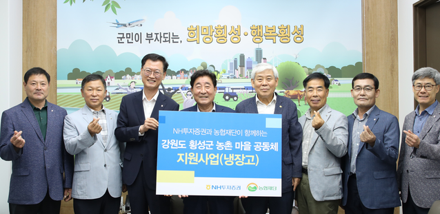 NH투자증권은 강원도 횡성군 마을공동체에 냉장고 36대를 기부했다고 24일 밝혔다.회사는 이날 횡성군청에서 냉장고 전달식을 진행했으며, 전달식에는 배부열 NH투자증권 부사장, 김명기 횡성군수 등이 참석했다.이번 강원도 횡성군 농촌 지원사업은 경북 봉화군과 전남 고흥군 그리고 충북 괴산군에 이어 올해 4번째다.회사는 올해 총 6개군에 냉장고 360대를 전달한다는 계획이다. 지역 선정은 행정안전부의 인구통계를 활용해 고령화 비율, 독거노인 비율, 절대 인구수 및 인구감소 추세, 재정자립도 등을 종합적으로 반영, 가중치를 적용해 우선순위를 따른다.회사는 범농협그룹으로서 농촌 일손돕기를 비롯한 농가 지원 및 사회적 책임활동을 적극 실천하고 있으며, 앞으로도 마을공동체 지원사업을 지속한다는 계획이다.배부열 부사장은 "마을공동체 지원사업이 지역 어르신들이나 주민들에게 도움이 되길 바란다”며 “NH투자증권은 범농협그룹으로서 지속적인 농촌지원사업을 실시해 나가겠다”고 밝혔다.