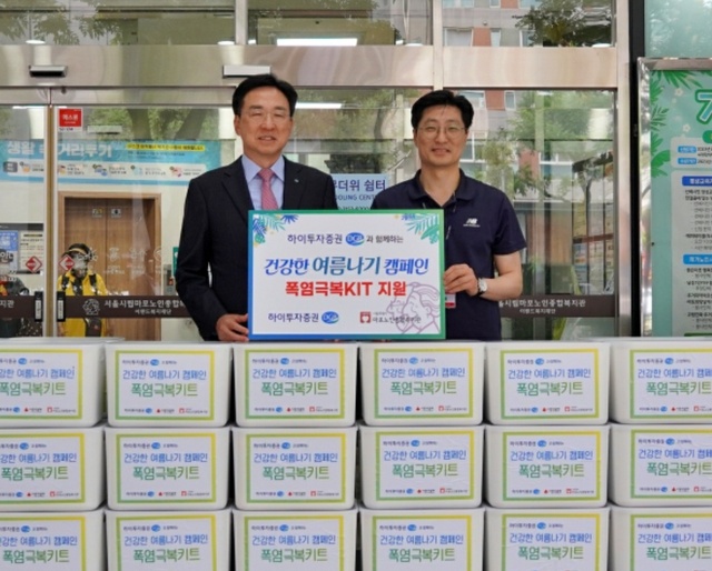 하이투자증권은 혹서기 취약계층 어르신의 건강한 여름나기 지원을 위한 사회공헌 활동을 진행했다고 24일 밝혔다.이번 사회공헌 활동은 DGB금융그룹의 DGB사회공헌재단이 무더위 극복을 위해 매년 진행하는 DGB 블루윈드(Blue Wind)에 참여하기 위해 마련된 것으로, 취약계층 어르신들의 건강한 여름나기를 지원한다.이날 진행된 전달식에 홍원식 하이투자증권 사장과 김 욱 서울마포노인종합복지관장 등 관계자들이 참석한 가운데 회사는 고급 여름 이불, 해충제, 사골곰탕 등 8여 가지 물품으로 구성된 폭염극복 키트 80개(500만원 상당)를 전달했다.해당 물품은 마포구 관내 남성 독거, 거동 불편 및 주거 취약 어르신들에게 전달될 계획이다.홍원식 사장은 "폭염에 많은 어려움을 겪는 취약계층 어르신들이 건강하게 여름을 보내실 수 있도록 지원하고자 이번 활동을 마련했다"며 "하이투자증권은 ESG경영의 실천을 위해 사회공헌 활동을 지속적으로 진행해나갈 것"이라고 말했다.