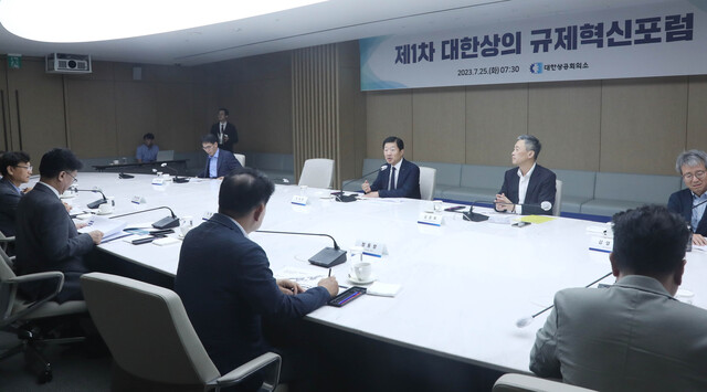 규제 후진국이라는 오명을 벗어나기 위해 규제입증 책임제가 정착돼야 한다는 주장이 제기됐다.대한상공회의소(이하 대한상의)는 25일 상의회관에서 기업·시장중심의 규제현안 논의와 대안 마련을 위한 첫 번째 ‘규제혁신포럼’을 개최했다고 밝혔다.대한상의 규제혁신포럼은 민관협력 강화와 규제개선 체감도 제고를 위해 기업의 시각에서 규제 현안을 논의하고 실효성있는 대안들을 모색해보고자 마련됐다.포럼에는 우태희 대한상의 상근부회장과 이정원 국무조정실 국무2차장, 정동창 대한석유협회 부회장, 최규종 조선해양플랜트협회 부회장, 김정회 반도체산업협회 부회장, 박성호 인터넷기업협회 회장, 최성진 코리아스타트업포럼 대표, 이광영 한국철강협회 전무, 김주홍 한국자동차산업협회 전무 등 주요 협단체 임원이 참석했으며 강영철 KDI 초빙교수와 원소연 행정연구원 규제정책연구실장이 발제를 맡았다.주제발표를 맡은 원소연 행정연구원 실장은 낡고 과도한 규제가 새로운 비즈니스 기회를 좌초하고 있다고 설명했다. 원 실장은 “현실에 맞지 않거나 비합리적인 규제가 경영활동을 제약하고 기업생존을 위협하고 있다”면서 “규제의 취지와 필요성이 있더라도 그 수단이 기업에 과도한 부담을 전가하게 되면 기업을 망하게 할 수도 있다”고 말했다.두 번째 주제발표를 맡은 강영철 KDI교수는 책상머리 규제 대신 현장에서 답을 찾아야 한다고 강조했다.그는 “지난 25년간 규제개혁으로 입증된 팩트는 규제공무원이 현장을 잘 모르고, 강력한 조정자 없인 미세조정에 그치며, 진짜 중요한 규제는 중장기검토로 퉁친다는 것”이었다며 “현장을 모르고 만든 책상머리규제를 개선하기 위해 우문현답(우리의 문제는 현장에 답이 있다)식 접근이 중요하다”고 전했다.특히 이날 강 교수는 현재의 부처자율식 규제개선으로는 한계에 봉착할 것이라면서 민간심의형 규제책임제의 도입을 제안했다. 민간이 개선대안을 마련해 제안하면 부처가 규제존치 필요성을 입증하고, 규제개혁위원회가 최종 조정하는 방식으로 이뤄져야 한다는 주장이다.포럼에 참석한 산업계 관계자들은 기업현장의 규제애로 건의가 계속 쌓이고 있다며 조속한 해결을 촉구해야 한다고 한 목소리를 냈다.정동창 대한석유협회 부회장은 “글로벌 경쟁력 확보를 위해 친환경 에너지전환, 탄소중립 대응 등에 대규모 투자를 계획하고 있으나 규제로 인해 어려움이 많다”고 전했다.최성진 코리아스타트업포럼 대표 역시 “정부가 적극적으로 규제혁신 의견을 수렴하고 있으나 검토 단계에서 진척이 없는 경우가 많다”며 “정부가 보다 강력한 의지를 가지고 신속 처리하여 주시길 바란다”고 말했다.우태희 대한상의 상근부회장은 “기업들은 규제를 흔히 말하는 손톱밑 가시가 아니라 목에 들이댄 칼날처럼 느끼고 있다”며 “규제 후진국이라는 오명도 이제는 벗어날 때가 됐다”며, “단순건수 기반이 아닌 기업현장 중심 접근과 신속한 개선, 도입 취지를 살린 규제입증 책임제의 정착 등의 노력이 중요하다”고 강조했다.한편 대한상의는 향후 연속적으로 입지, 환경, 신산업 등 주요 분야별 규제현안과 개선방안을 논의하기 위한 포럼을 개최해 기업과 시장의 시각에서 기업현장의 규제애로와 대안들을 모색해 나갈 계획이다.