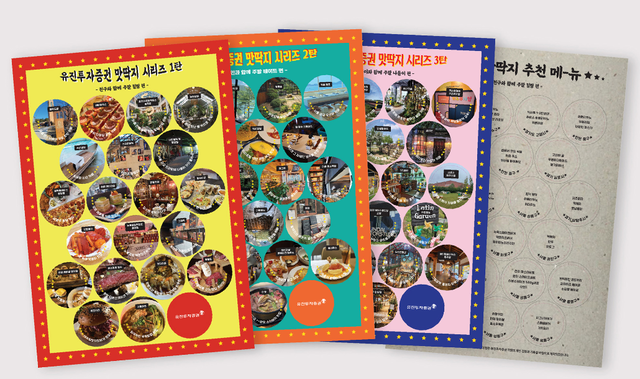 유진투자증권은 영업점 내방 고객을 대상으로 수도권 지역 맛집 정보가 담긴 종이 딱지 콘텐츠 ‘맛딱지’를 배포한다고 10일 밝혔다.맛딱지는 고객에게 친근하고 재미있는 굿즈(Goods)와 도움이 되는 정보 서비스를 제공하기 위해 기획됐다. 회사는 기획 취지를 살리기 위해 일반적인 책자 형태가 아닌 레트로(Retro) 감성이 묻어있는 원형 종이 딱지에 정보를 담았다.세 장으로 구성된 맛딱지는 총 서울, 인천, 경기 지역의 60개 맛집 정보가 포함돼 있다. 맛집 발굴과 탐방에 관심이 많은 회사 직원이 직접 찾아가 경험하고 기록한 정보를 바탕으로 60개의 맛집을 추렸다.이는 ▲친구와 함께 주말 힐링 편 ▲연인과 함께 주말 데이트 편 ▲아이와 함께 주말나들이 편 등 총 세 개 테마로 구성돼 있다. 한 곳의 맛집 정보가 들어있는 종이 딱지가 테마별로 20개씩 들어 있으며, 고객은 딱지를 통해 맛집의 상호, 콘셉트, 특징, 위치, 주요 메뉴 등의 정보를 확인 가능하다.회사는 ‘챔피언스라운지 금융센터’ 등 수도권 지역 금융센터와 지점에 방문한 고객에게 ‘맛딱지’ 콘텐츠를 선착순으로 무료 배포할 예정이다.한편 유진투자증권은 작년부터 차별화된 굿즈 마케팅을 추진해 오고 있다.지난해 수제맥주 전문기업 플래티넘크래프트와 협업하여 업계 최초로 콜라보 수제맥주 ‘따상주’를 출시했다. 따상주는 작년 한 해 동안 약 100만캔이 판매됐다. 올해 상반기에는 소셜스타트업 키뮤스튜디오와 공동작업을 통해 골프공, 양말, 볼타월, 게임칩 등 골프용품 7종으로 구성된 골프 굿즈 패키지를 제작한 바 있다.회사 관계자는 “고객에게 친숙하고 재미있는 굿즈와 도움이 되는 정보 콘텐츠를 제공하기 위해 유진투자증권 직원이 직접 발굴한 맛집 정보를 바탕으로 이번 맛딱지를 기획하게 됐다”면서 “앞으로도 다양한 정보 콘텐츠와 굿즈를 통해 증권사에서 하지 않는 차별화된 고객 서비스를 제공하겠다”고 전했다.