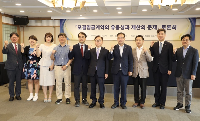 한국경영자총협회와 중소기업중앙회가 "포괄임금계약 제한은 기업 경쟁력을 떨어뜨리고, 노사 분쟁 확산을 초래한다"고 지적했다.경총과 중기중앙회는 17일 오전 서울 중구 한국프레스센터에서 '포괄임금계약의 유용성과 제한의 문제' 토론회를 개최했다.이동근 경총 상근부회장은 인사말을 통해 "산업환경과 일하는 방식의 변화로 자유롭게 시공간을 선택해 업무 효율을 높이는 근로방식이 확산하고 있는데, 우리 노동법은 여전히 70년 전의 획일적인 시간 규제 방식에 머물러 있다”며 “어떤 면에서는 오히려 역행하는 모습도 보인다. 그 대표적인 것이 포괄임금 계약 금지 논란"이라고 지적했다.포괄임금제는 근로계약 체결 시 법정 기준 노동 시간을 초과한 연장, 야간근로 등이 예정돼 있는 경우 계산 편의를 위해 노사 합의를 바탕으로 연장, 야간, 휴일수당을 미리 정해 매월 급여와 함께 지급하는 임금 산정 방식이다.이 부회장은 최근 국회에 이를 금지하고 사용자에게 근로시간 측정·기록 의무를 부과하는 법안들이 제출된 것과 관련해 "사용자의 지휘·감독하에 근로를 제공하는 시간 범위를 두고 산업현장에서는 많은 논란이 발생할 것”이라며 “산업현장에서 창의성이 생산성을 높이는 업무가 증가하고 있는데, 보상의 기준을 단순히 근로시간의 양에 맞추는 방식을 강제하면 근로자의 창의성을 훼손하고 기업의 효율성을 저해하는 것”이라고 지적했다.정윤모 중기중앙회 부회장도 “포괄임금계약이 전면 금지될 경우 임금총액 감소와 이에 따른 노사 분쟁 확산, 일부 근로자의 불필요한 초과근로 문제도 발생할 것”이라며 “포괄임금이 오남용되는 영역과 사업 특성에 맞게 사용 중인 영역을 구분하는 한편 임금체계 개편도 논의할 필요가 있다”고 말했다.학계에서도 포괄임금계약의 필요성에 대해 거듭 강조했다. 발제에 나선 권혁 부산대 법학전문대학원 교수는 “포괄임금계약은 경직적인 근로기준법제하에서 제도와 현실의 간극을 메워 노사 간 갈등을 완화하는 기능을 해 오고 있는 것으로 보인다”고 진단했다.이정민 서울대 경제학부 교수 역시 “포괄임금제는 근로자는 임금 변동성이라는 위험을 피하고 기업은 비용 예측을 용이하게 하는 등 노사 모두에게 바람직한 제도”라고 강조했다.이정 한국외대 법학전문대학원 교수가 좌장을 맡아 진행된 이번 토론회는 이상희 한국공학대 지식융합학부 교수, 이상훈 대한광업협동조합 이사장, 정명기 한국노총 중앙법률원 변호사, 황용연 경총 노동정책본부장, 이지영 고용노동부 근로시간정책과장이 참석해 포괄임금계약의 유용성과 제한의 문제점에 대해 다양한 의견을 제시했다.이외에도 중소기업계를 대표해 토론자로 참석한 이상훈 이사장은 “포괄임금계약 문제는 오남용으로 임금을 덜 받는 근로자를 구제하는 방향으로 신중히 검토돼야 한다”며 “포괄임금계약 유효 여부는 근로시간 관리의 기술적 가능 여부보다는 사업장의 특성과 노사 합의가 먼저 검토돼야 할 것”이라고 밝혔다.