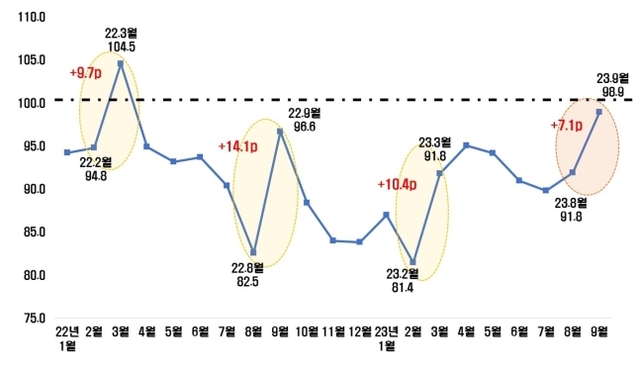 9월 BSI 96.9… 내수·수출·투자 동시 부진