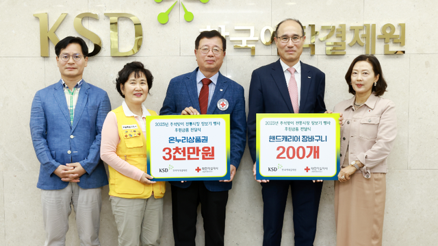 한국예탁결제원 KSD나눔재단은 19일 부산 본사에서 ‘사랑의 생필품 나눔 행사 후원금 전달식’을 개최하고 장애인 단체 2곳에 후원금 총 6000만원을 전달했다고 밝혔다.행사는 취약한 여건 속에서 어려움을 겪고 있는 지역의 장애인을 지원하고 지역경제 활성화에 기여하고자 마련됐다.후원금을 전달받은 부산남구장애인협회와 부산시각장애인복지연합회는 부산·경남지역 소상인에게 각각 쌀과 라면을 구입해 2600가구에게 배포할 예정이다.이순호 재단 이사장은 “우리 이웃들이 행복하고 풍요로운 추석을 맞이하는데 도움이 되길 바란다”며 “앞으로도 지역 사회에 도움이 되는 나눔을 실천하기 위한 노력을 계속하겠다”고 전했다.재단은 2015년부터 매년 부산지역 사회배려계층을 대상으로 쌀과 라면 등 생필품을 후원하는 등 지속적인 지원을 이어오고 있다.
