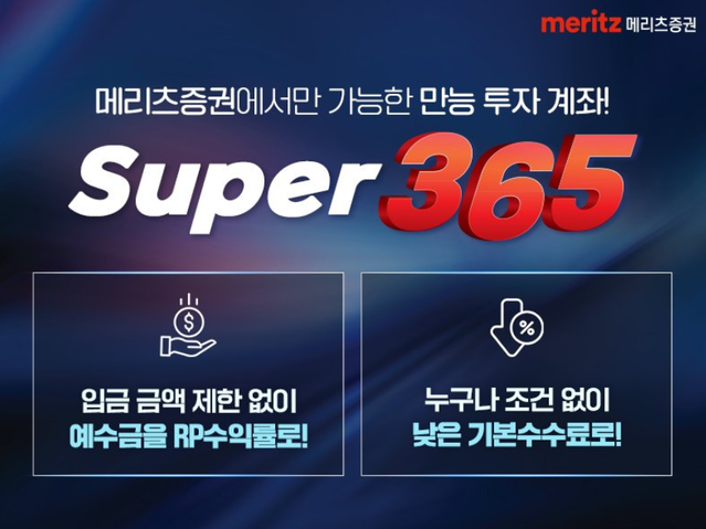 메리츠증권은 리테일 사업 시장지위가 낮은 약점을 극복하고자 디지털을 통한 리테일 비즈니스에 주력하고 있다고 25일 밝혔다.비대면 전용 종합 투자계좌 슈퍼(Super)365 계좌 내 예탁 자산이 1200억원을 돌파하며 큰 인기를 끌고 있다. 별도 광고 없이 입소문 만으로도 예탁 자산이 빠르게 늘어나며 회사 주력으로 자리잡았다.이 계좌는 투자를 하지 않아도 보유한 현금에 일복리 이자수익을 제공하는 ‘RP 자동투자 서비스’를 비롯해 국내외 주식, 펀드, 채권 등 다양한 금융투자상품을 국내 최저 수준 수수료로 거래할 수 있는 온라인 전용 종합 투자계좌다.지난 12월 출시된 슈퍼365 계좌는 오픈서베이를 통해 비대면 증권계좌 고객 1000명 대상 진행한 설문조사를 바탕으로 이자 수익과 수수료를 중요시하는 고객 니즈를 반영해 설계됐다.핵심 서비스인 RP 자동투자는 계좌 내 보유 현금을 매 영업일 기준 하루에 한번 지정된 시각에 자동으로 투자하고 다음날 자동 매도해 일복리 투자를 가능하게 하는 서비스다.이는 증권사 계좌에서 높은 이자를 받기 위해 매번 별도의 CMA 계좌로 현금을 이체하거나 수시 RP상품을 매매해야 하는 단점을 획기적으로 개선해 높은 예수금 이자와 더불어 언제든지 주식 및 상품 매매와 출금이 가능한 장점이 있다.은행의 적금통장이나 증권 CMA 계좌가 특정 기간이 지나거나 출금 신청을 해야만 이자를 받을 수 있었던 것과는 달리 해당 계좌는 별도의 신청 없이 자동으로 보유 현금에 일복리 이자수익을 제공한다. 원화와 미국 달러 모두 금액 한도 없이 대기자금에 대해 원화 3.15%, 달러 4.2%의 이자를 받을 수 있다.예를 들어 계좌 내 원화 기준 예수금이 3000만원 있을 경우 매 영업일 기준 세전 평균 약 3600원이 제공된다. 직장인 왕복 출퇴근 대중교통 비용 수준의 금액이다. 1억원 예치 시에는 영업일 기준 세전 평균 약 1만2000원이 이자로 제공돼 직장인 한끼 점심값 해결이 가능하다.회사는 고객 편의를 위해 비대면 계좌 개설 프로세스도 간소화했다. 계좌 개설방식, 온라인 이체한도 설정, 위탁증거금율 설정 등 불필요한 단계를 줄이고 상세 페이지도 직관적으로 재구성했다.또한 계좌 개설 최초 단계에서 관리자 없이 운영되는 디지털센터 관리 계좌와 전문 PB에게 상담과 자산관리를 받을 수 있는 영업점 관리 계좌를 구분해 모바일 앱 ‘메리츠 SMART’에서 투자 성향과 목적에 맞춰 계좌 개설이 가능하다. 디지털센터 관리 계좌로 설정 시에는 이제부터 슈퍼365 계좌가 메인 계좌로 설정된다.회사 관계자는 "슈퍼365 계좌는 고금리 시기에 고객들이 최상의 조건에서 투자와 자산관리에 임할 수 있도록 모든 혜택을 집대성했다"며 "앞으로도 개인투자자들에게 보다 나은 혜택을 제공하기 위해 메리츠증권만의 차별화된 상품과 서비스를 지속적으로 개발할 예정"이라고 말했다.
