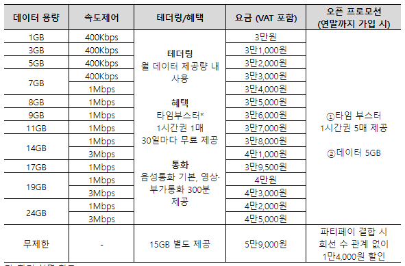 LG유플러스가 월 3만원대 5세대 이동통신(5G) 중간 요금제를 새롭게 선보인다. 정부의 가계통신비 인하 기조에 발맞춰 데이터 최저 1GB부터 무제한까지 요금제를 세분화한 것이 특징이다.5일 LG유플러스에 따르면 이날 신규 5G 요금제 '너겟(Nerget)' 16종을 출시했다. 너겟 요금제는 ▲5G 온라인 전용 요금제 16종 ▲가족·지인간 결합 할인을 제공하는 ‘파티페이’ ▲데이터·부가통화를 추가 구매할 수 있는 ‘토핑’으로 구성돼 있다.요금제의 가장 큰 특징은 데이터 저용량 구간을 1GB부터 2GB 단위로 촘촘하게 나눴다는 점이다. 기존 온라인 전용 다이렉트 요금제의 최저용량은 8GB로, 이보다 낮은 수준의 데이터를 이용하는 고객이 선택할 수 있는 요금제가 마땅치 않았다. 너겟 요금제로 데이터 미사용량을 최소화해 데이터를 쓴 만큼만 요금을 지불할 수 있게된 것.너겟은 최저 3만원대 1GB부터 4만원대 24GB까지 데이터 제공량과 최대 2개 구간의 속도제어 옵션을 조합해 16개로 세분화했다. 고객이 데이터 사용량을 쉽게 알 수 있도록 사용량 50%, 80%, 100% 도달 시 알림도 설정했다.LG유플러스는 너겟 요금제 16종을 이용하는 고객(파티원)이 결합 시 인당 최대 1만 4000원 할인 혜택을 제공하는 '파티페이'도 마련했다. 최대 4회선까지 결합이 가능하고, 선납 요금에 따라 3만원대는 2000원, 4만원대는 3000원 할인된다. 무제한 요금제는 결합 회선 수에 따라 3500원(2회선)부터 최대 1만 4000원(4회선) 할인해 준다.기본 제공량을 모두 소진한 후 데이터나 영상 통화를 추가 구매할 수 있는 '토핑(Topping)'도 특징이다. 토핑은 ▲특정 시간동안 속도·용량 제한 없이 데이터를 사용할 수 있는 '타임 부스터' ▲테더링 전용 데이터를 충전할 수 있는 '테더링 부스터' ▲영상통화와 부가통화를 추가 이용할 수 있는 '영상·부가통화 부스터' 3가지다.이 외에도 너겟은 기존 온라인 다이렉트 요금제와 마찬가지로 별도 약정 없이 이용할 수 있다. 무약정 상품이기 때문에 요금제 변경 및 해지가 자유롭고, 요금제 변경·해지 시 잔여 일수 또는 잔여 데이터에 따라 환불받을 수 있다. 요금 납부 방식은 선불형으로 전용 앱에서 신용카드로 선결제 후 즉시 이용 가능하다.정현주 LG유플러스 인피니스타(infiniSTAR)센터장·전무는 "데이터를 모두 소진했지만, 필요한 만큼의 데이터를 요금제 변경 없이 쉽고 간편하게 구매할 수 있다"고 설명했다.앞서 이동관 방송통신위원장은 이동통신3사 대표이사(CEO)와 첫 회동에서 가계통신비 인하를 주문한 바 있다. 통신산업이 오랜 기간 과점체제로 운영되면서 '이권 카르텔'이라는 지적이다. 통신사가 국민 생활에 필수적 서비스를 제공하고 있지만 서민들 입장에서는 높은 가계통신비가 부담이 되는점을 꼬집은 것.LG유플러스의 너겟 요금제 출시로 정부의 가계통신비 인하 정책은 탄력을 받을 전망이다. 무약정 온라인 요금제로 데이터 제공량을 세분화하고 데이터가 남을 경우 환불이 가능해졌다는 점에서다. 또한 3GB 요금제(3만 1000원)에 가입하고 파티페이(2000원 할인)로 결합 시 2만 9000원대로 동일한 통신 서비스 이용이 가능하다.향후 LG유플러스는 11월 중 최대 11GB 데이터 혜택을 강화한 청년(만 19세~29세) 전용 너겟 요금제를 추가로 선보일 계획이다. 또한 너겟 앱은 고객의 취향을 탐색할 수 있는 오프라인 체험형 혜택과 디지털 콘텐츠를 제공해 나갈 예정이다.정 전무는 "이번 너겟 요금제를 통한 고객의 가계통신비 절감은 물론, 향후 고객 일상에 새로운 경험을 더할 수 있도록 다양한 서비스를 선보일 것"이라고 말했다.한편, LG유플러스는 오는 연말까지 너겟 요금제 가입 고객에게 타임 부스터 1시간권 5매와 추가 데이터 5GB를 제공한다. 너겟 요금제 16종은 2024년 3월 말까지 가입할 수 있으며, 프로모션 종료 후 정규 상품으로 전환을 검토할 계획이다.