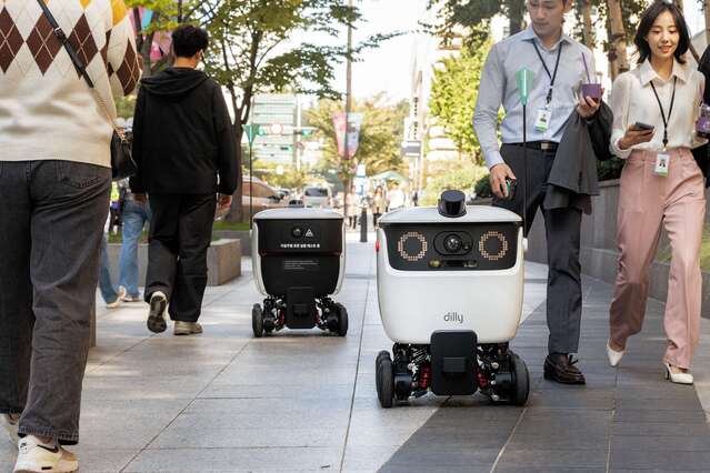 배달의민족을 운영하는 우아한형제들이 자체 개발한 자율주행 로봇 딜리를 '테헤란로 로봇거리 조성사업'에 투입해 실외 로봇 배달 서비스를 시작했다고 7일 밝혔다.테헤란로 로봇거리 조성사업은 우아한형제들과 서울시, 강남구, LX한국국토정보공사, LG전자, WTC Seoul 등 6개 기업과 기관이 컨소시엄을 구성해 코엑스몰을 중심으로 테헤란로 일대에 선보이는 대규모 서비스 로봇 실증 사업이다.지난해 8월 코엑스몰에 서빙로봇을 도입하며 첫 서비스를 개시했고, 10월엔 코엑스몰 내 식음료 매장에서 트레이드타워로 식음료를 배달하는 실내 로봇 배달 서비스를 제공하고 있다.이번 실외 로봇 배달 서비스는 테헤란로 로봇거리 조성사업 1단계 사업의 후속으로 코엑스몰에서 인근 건물까지 로봇 배달 서비스를 구현한다.코엑스몰 인근 건물에 있는 고객이 배민 앱에서 로봇 배달이 가능한 매장에서 식음료를 주문하면, 딜리가 실외에서 식음료를 싣고 건물위치를 파악해 지정된 장소까지 배달한다.고객은 모바일앱에서 배달 과정을 실시간으로 확인할 수 있다. 주문접수, 출발, 도착 예정, 도착 등 일련의 과정이 고객에게 알림톡 형태로 안내된다. 딜리는 예비 2대를 포함해 총 5대가 투입된다.딜리는 카메라와 라이다(LiDAR) 등의 센서를 활용해 복잡한 도심 환경에서 주변 사물과 장애물을 빠르고 정확하게 파악한다. 유동 인구가 많은 보행로에서 행인을 피하고 돌발상황에서도 빠르게 새로운 경로를 생성하는 고성능 자율주행 알고리즘을 탑재했다.그동안 배민 로봇은 국내외 업체에서 개발한 로봇을 커스터마이징해 실증 사업을 진행했지만, 이번 딜리는 순수 자체 기술력으로 개발해 냈다.6개의 바퀴에는 독립 서스펜션을 장착해 비포장도로나 연석 같은 울퉁불퉁한 표면을 지날 때도 속도는 유지하면서 음식이 쏟아지거나 망가지지 않도록 했다.또 앞뒤 바퀴가 독립적으로 움직일 수 있게 설계해 고속 주행 시 안정적으로 이동함은 물론, 엘리베이터나 아파트 복도 등 좁은 공간에서도 방향 전환이 쉽도록 했다.딜리에는 인간 친화적인 디자인과 소통 기능이 도입돼, 사람과 같은 공간에서 어울려 원활하게 배달 서비스를 제공한다. 로봇의 높이는 일반적인 책상이나 식탁 높이인 720㎜로 설계돼 사용자가 허리를 많이 굽히지 않고 음식을 넣거나 꺼낼 수 있도록 했다.배민은 이번에 개발된 딜리를 앞세워 경기도 수원 광교에서 구현한 로봇 배달 서비스를 서울 내 아파트 단지에서도 실증한다는 목표다.