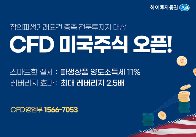 하이투자증권은 CFD 서비스 범위의 확대를 위해 미국 주식 CFD 서비스를 오픈했다고 27일 밝혔다.회사는 미국 주식 시장의 정규 시간에 S&P 500, 나스닥 100, 다우 30의 구성 종목 및 ETF 를 대상으로 CFD 서비스를 제공한다.지난 9월 국내 주식 대상으로 CFD 서비스를 오픈한데 이어 미국 주식으로 CFD 거래 가능 자산을 확대했다.CFD는 투자자가 주식의 실제 보유 없이 가격 변동분에 대한 차액만 정산하도록 하는 장외파생상품으로 전문투자자만 거래 가능하다. 투자자는 CFD 거래를 통해 종목별로 산정된 증거금 기준으로 레버리지 투자를 할 수 있으며, 증거금이 100%인 계좌를 활용하여 레버지리를 사용하지 않는 투자도 가능하다.주가가 하락하는 경우 매도 포지션 구축으로 수익 창출 및 헤지를 할 수 있으며, 별도의 만기가 없어 원하는 기간까지 보유해 유연한 활용이 가능하다.특히 CFD를 통한 미국 주식에 대한 매매 차익은 파생상품 양도소득세 11%만 적용되기에 유용한 절세수단으로도 활용할 수 있다.전문투자자는 주권상장법인 등 금융상품에 관한 전문성이 있는 투자자로 하이투자증권 영업점을 통해 등록할 수 있으며, 개인 전문투자자의 경우 최근 5년 이상 지분증권, 파생상품, 고난도 파생결합증권 등의 월말평균잔고가 3억원 이상 등 거래요건을 충족하는 경우에만 CFD의 거래가 가능하다.회사 관계자는 “투자자들의 미국 시장 접근성 제고를 위해 CFD의 거래 범위를 미국 주식으로 넓혔다. 순차적으로 거래 가능 종목과 시간을 확대할 예정”이라며 “100% 증거금 계좌의 활용은 별도로 부과되는 금융비용이 없으며 절세 혜택도 누릴 수 있어 매력적인 투자 수단이 될 것”이라고 밝혔다.