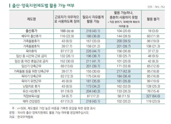 수출 기업 절반은 출산과 양육 지원 제도를 몰라서 쓰지 못하는 것으로 나타났다.