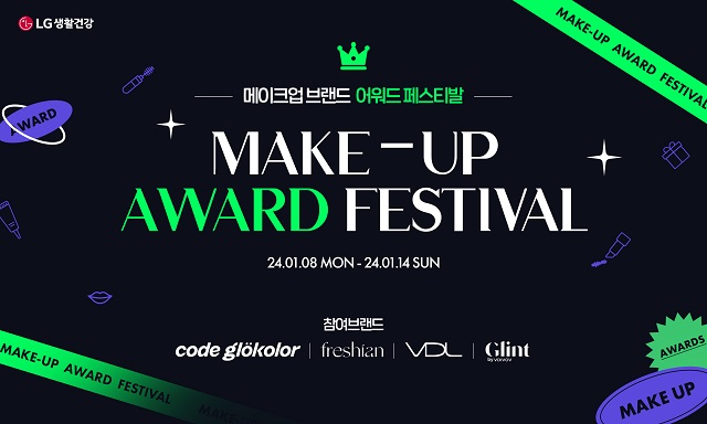 LG생활건강이 색조 제품 할인 행사 ‘메이크업 브랜드 어워드 페스티발’을 전개한다고 7일 밝혔다.1월 8일부터 14일까지 진행되는 이번 행사는 지난해 글린트·코드글로컬러·VDL·프레시안의 일부 품목이 뷰티 플랫폼 글로우픽과 뷰티 매거진 얼루어 등에서 어워드를 수상한 것을 기념하기 위해 마련됐다.행사에서는 어워드 수상 제품 특별 행사는 물론, 일부 품목을 70% 할인된 가격에 판매하는 등 기존에 없던 새로운 혜택을 선보인다.먼저 어워드 수상 제품 행사로 글린트는 ‘톤업 크림’ 50% 할인과 ‘하이라이터·블러쉬 세트’ 30% 할인 및 파우치&브러쉬 증정 행사를 준비했다.코드글로컬러는 ‘픽스온 프라이머’를 26% 할인하고 VDL은 ‘파운데이션’, ‘쿠션’, ‘프라이머 포 아이즈’ 단품을 19% 할인하며 쿠션 단품 구매 고객에게는 동일호수 리필을, 프라이머 포 아이즈 단품 구매 고객에게는 핸드크림을 증정한다.프레시안은 ‘파운데이션’ 단품을 40%, ‘쿠션·파운데이션 세트’를 22% 할인하고, 쿠션·파운데이션 세트 구매고객과 ‘쿠션 단품’ 구매 고객에게는 리필 1개를 증정한다.이외에도 글린트 ‘아이팔레트’와 프레시안 ‘립틴트’를 70% 할인해 판매하며 코드글로컬러 ‘오일컷 팩트 및 파우더’와 VDL ‘아이샤인 아이섀도우 팔레트’, ‘컬링 마스카라’, ‘스키니 브로우’는 50% 할인해 선보인다.