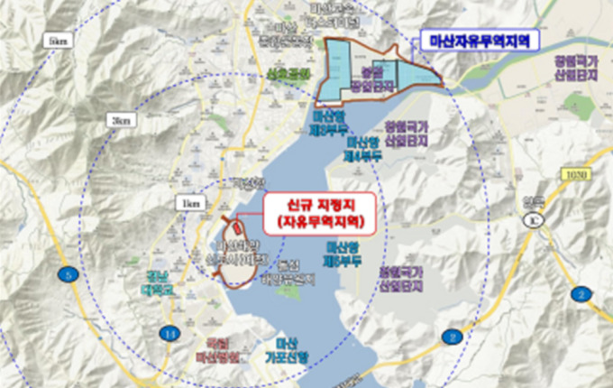 산업통상자원부는 25일 마산해양신도시 내에 마산지역 두번째 자유무역지역을 신규 지정·고시(3만3089㎡)했다.