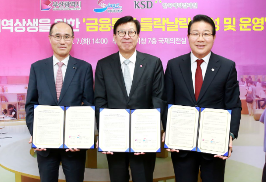 한국예탁결제원은 7일 오후 2시 부산시청에서 부산시 및 부산시 동구와 민관협력 기반 지역 상생을 위한 부산시 금융특화 들락날락 조성 및 운영을 위한 업무협약을 체결했다고 밝혔다.이날 협약식에는 이순호 예탁결제원 사장, 박형준 부산시장, 김진홍 부산시 동구청장이 참석해 협약서에 서명했다.그간 예탁결제원은 부산 시내 복합업무시설 건립을 위한 부지 마련을 위해 부산시와 긴밀히 협의해왔다.이에 대한 결실로 2022년 6월 예탁결제원은 부산시 교육청과 부산시 동구 좌성초등학교(이하 ‘좌성초’) 부지 매입계약을 체결한 이후 2023년 10월 좌성초등학교 인근 국유지를 추가로 매입해 부산 시내 복합업무시설 건립을 위한 부지 매입을 완료했다.예탁결제원은 해당 복합업무시설을 현재 예탁결제원의 본사가 위치한 부산국제금융센터(BIFC)와 연계해 교육・연구 및 금융 관련 기반시설로 활용할 계획이다.이번 업무협약은 폐교된 좌성초 부지에 들어설 예탁결제원의 복합업무시설 내에 부산시와 부산시 동구청과 협력해 부산시에서 추진하는 금융특화 들락날락을 조성하고 그 운영을 지원하기 위함이다.금융특화 들락날락 조성사업은 부산지역의 학생 및 지역 주민에게 체험형 금융교육을 제공하고 교류와 소통을 통한 지역공동체 활성화를 목적으로 하는 부산시의 15분 도시 가치실현 사업의 일환이다.이번 업무협약을 통해 부산시와 부산시 동구는 2021년 학령인구의 감소로 인해 폐교돼 상실된 초등교육 인프라를 대체할 수 있는 금융교육에 특화된 복합문화공간을 확보하게 된다.이순호 사장은 “저희가 건립할 예정인 부산시 동구 복합업무시설에 들어설 금융특화 들락날락 공간은 부산시의 정책사업 성공을 위한 중요한 초석으로 역할을 할 것”이라며 “이번 부산시와의 협력사업은 부산 지역사회에 대한 사회공헌활동의 연장선이며, 시장 및 지역과 함께 성장하고자 하는 예탁결제원의 비전을 실현한다는 측면에서도 뜻 깊고 의미 있는 사업”이라고 밝혔다.