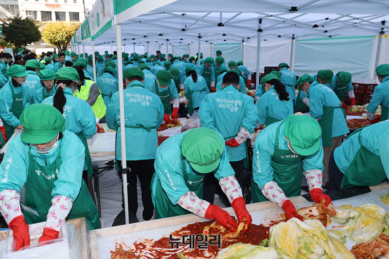 이날 하나금융 임직원들이 담근 1만1,111 포기 김치는 지역사회에 기부될 예정이다. 모두하나데이는 2011년 11월11일부터 시작한 하나금융그룹의 대표적인 ESG활동이다.