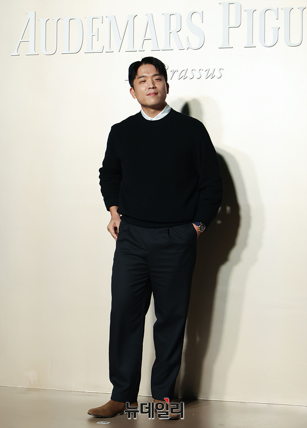 안성재 쉐프가 22일 오후 서울 성동구에서 열린 스위스 고급 시계 제조사 '오데마 피게(Audemars Piguet)' 플래그십 스토어 개점 기념 포토월에서 포즈를 취하고 있다.