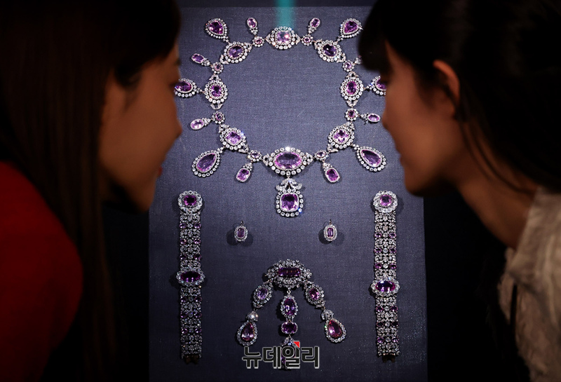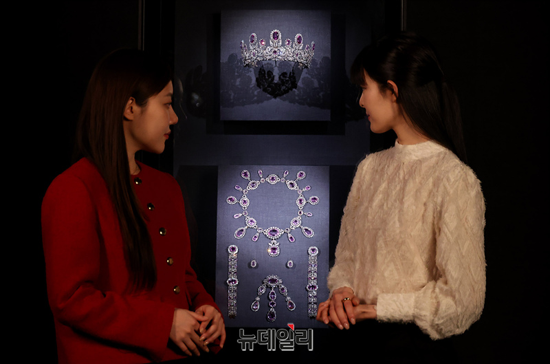 롯데가 12일 오전 서울 송파구 롯데뮤지엄에서 전시되고 있는 '디 아트 오브 주얼리(The Art of Jewellery): 고혹의 보석, 매혹의 시간' 작품중 독일 뷔르템베르크 왕가의 파뤼르를 선보이고 있다.독일 뷔르템베르크 왕가의 파뤼르는 이번 전시의 하이라이트인 작품으로 뷔르템베르크 왕실의 화려한 주얼리 세트다. 프랑스어로 파뤼르라고 불리는 이 세트는 티아라, 목걸이, 귀걸이, 브로치, 팔찌로 구성됐다.'디 아트 오브 주얼리' 전시회에는 세계적인 주얼리 콜렉션인 카즈미 아리카와의 소장품 중 역대 최대 규모인 208점을 선보인다. 전시는 9개 섹션으로 나눠 5천년 주얼리 역사 중 중요한 장면을 조명한다. 전시는 내년 3월 16일까지.