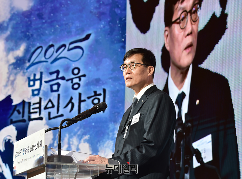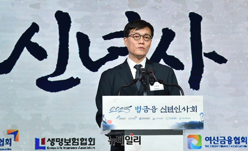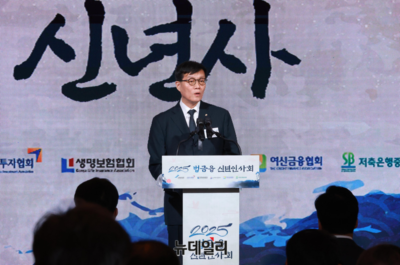 이창용 한국은행 총재가 3일 서울 중구 소공동 롯데호텔에서 열린 2025년 범금융 신년인사회에 참석해 신년사를 하고 있다.