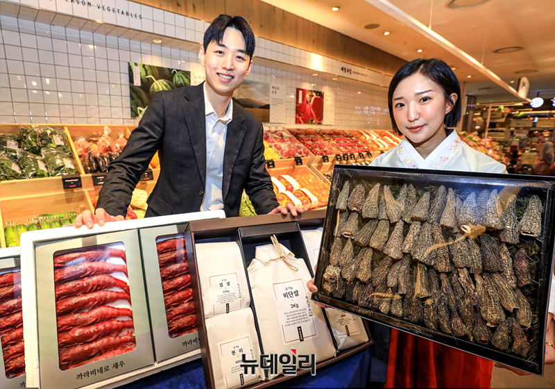 현대백화점이 올해 설 선물세트 판매 기간인 1월 28일까지 압구정본점 등 전국 15개 전 점포 식품관에서 업계 최초로 '모렐버섯' 선물세트를 선보인다.모렐버섯은 인공 재배가 어려워 세계적으로 희귀한 버섯이다. 식감이 쫄깃하고 풍미가 뛰어나 프랑스·이탈리아 등에서 최고급 식재료로 사용된다. 한정수량으로 가격은 150g에 25만원이다.이와 함께 스페인 청정 지역에서 한정 수량으로만 조업되는 프리미엄 새우 '까라비네로 새우' 선물세트(1kg, 40만원), 보성 득량만에서 재배한 고품질 '비단쌀'로 구성된 현대쌀집 유기농 비단쌀 잡곡 세트(유기농 비단쌀 3kg, 유기농 찹쌀·현미·찰흑미·찰현미 각 800g, 8만 5,000원) 등도 판매한다. (사진=현대백화점)