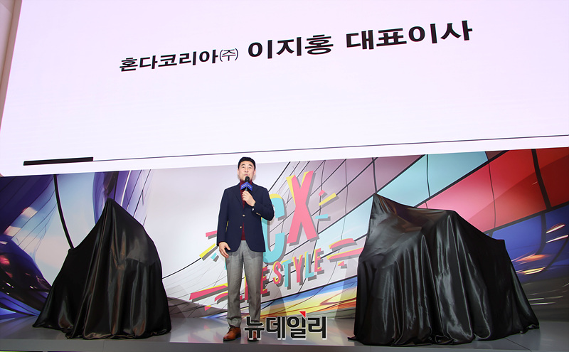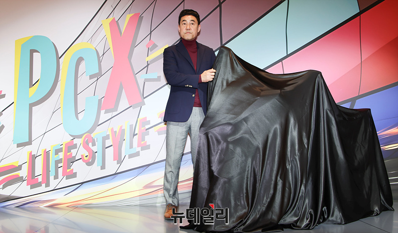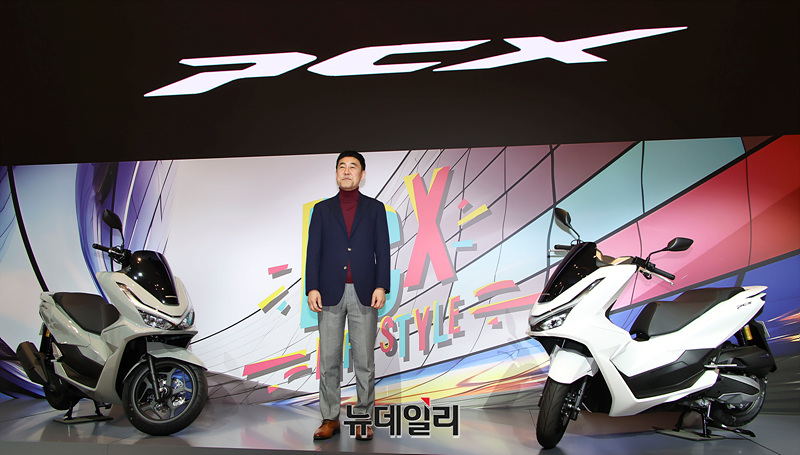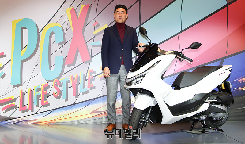 이지홍 혼다코리아 대표이사가 22일 오전 경기 성남시 카페 더 고에서 '2025년형 PCX'를 선보이고 있다.