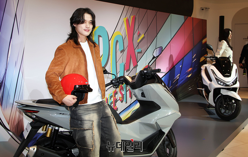 혼다코리아가 22일 오전 경기 성남시 카페 더 고에서 '2025년형 PCX'를 선보이고 있다.