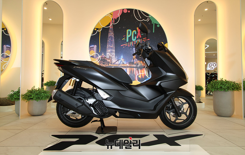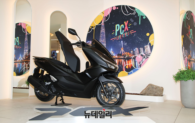 혼다코리아가 22일 오전 경기 성남시 카페 더 고에서 '2025년형 PCX'를 선보이고 있다.