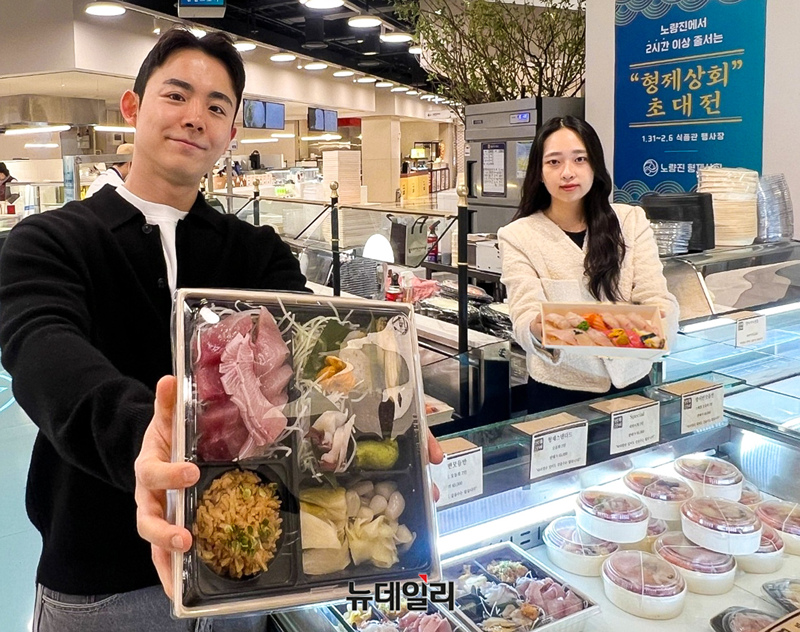 현대백화점이 2월 6일까지 목동점 지하 1층 식품관에서 노량진 수산시장 인기 매장 '노량진 형제상회' 팝업스토어를 진행한다.이번 팝업에는 활고등어·활전갱이·학꽁치·갈치·도다리로 구성된 '현대적인 모둠회'(1인, 4만 5,000원) 등 현대백화점에서만 단독으로 판매하는 특별 메뉴를 비롯해 특대방어를 재료로 사용한 회, 도시락 세트, 후토마끼 등도 선보인다.행사는 무역센터점(2/15~20)과 천호점(2/21~27), 압구정본점(2/28~3/6), 더현대서울(3/7~13), 판교점(3/14~20)에서도 순차적으로 열린다. (사진=현대백화점)