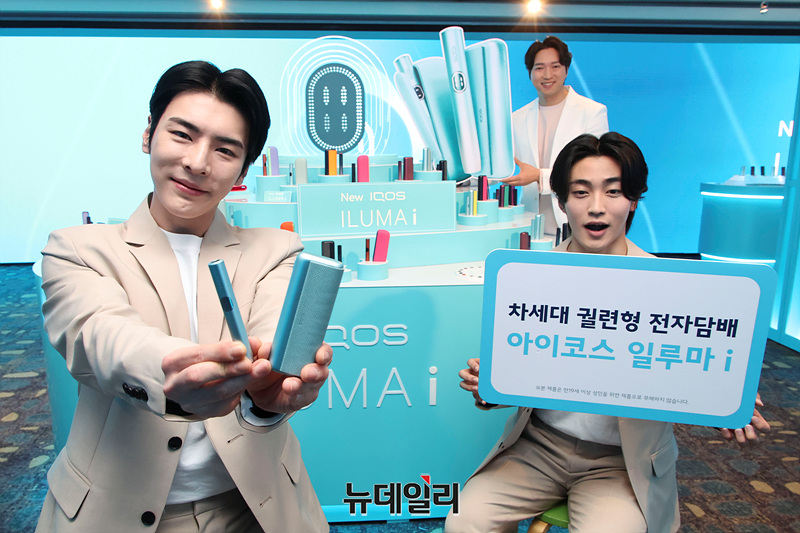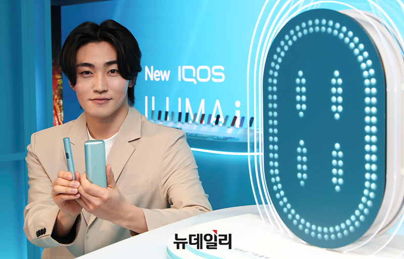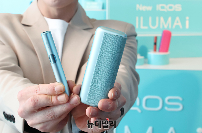 한국필립모리스가 5일 오전 서울 중구 롯데호텔에서 열린 신제품 론칭 행사에서 궐련형 전자담배 기기 신제품 '아이코스 일루마 i(IQOS ILUMA i)'를 선보이고 있다.'아이코스 일루마 i 시리즈'는 홀더에 장착된 터치스크린이 특징이다. 기기의 예열 상태, 잔여 사용시간과 잔여 사용 횟수 등을 한 눈에 알 수 있다. 홀더의 터치스크린을 이용해 기기 사용을 일시정지 할 수 있는 '일시정지 모드'도 탑재됐다.신제품 '아이코스 일루마 i 프라임'은 브리즈 블루, 미드나잇 블랙, 가넷 레드 세 가지 생각으로 출시된다. 가격은 12만 9,000원이다. '아이코스 일루마 i'는 브리즈 블루, 미드나잇 블랙, 비비드 테라코타, 디지털 바이올렛 총 네 가지 색상으로 출시된다. 가격은 8만 9,000원이다.7일부터 전국 9개 아이코스 직영 매장 및 공식 온라인 스토어에서 사전 구매가 시작된다. 13일부터 전국 아이코스 공식 판매처 및 편의점, 아이코스 공식 온라인 스토어에서 구매 가능하다.