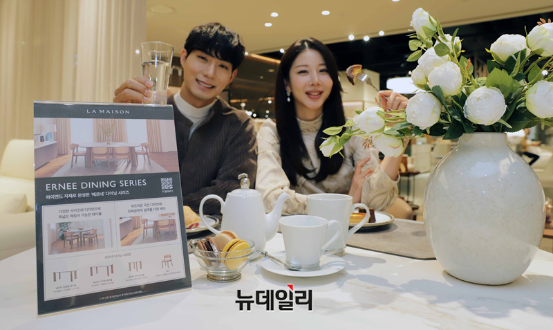 신세계백화점이 봄을 맞아 라이프 스타일 브랜드 신세계까사의 프리미엄 가구 컬렉션 라메종(LA MAISON)의 신규 상품인 ‘에르네(ERNEE)’ 다이닝 가구를 선보인다.'에르네 다이닝'은 부드러움을 주는 오크 무늬목과 천연 대리석을 연상케하는 패턴의 세라믹이 어우러져 차분하면서도 우아한 분위기를 선사한다. 상판의 형태는 원형과 타원형, 직사각형 3종 중 선택할 수 있어 고객 취향에 맞춰 유연하게 선택할 수 있다.강남점과 타임스퀘어점, 센텀시티점 까사미아 매장에서 만나볼 수 있다. 가격은 4인세트 기준 311만원. (사진=신세계백화점)