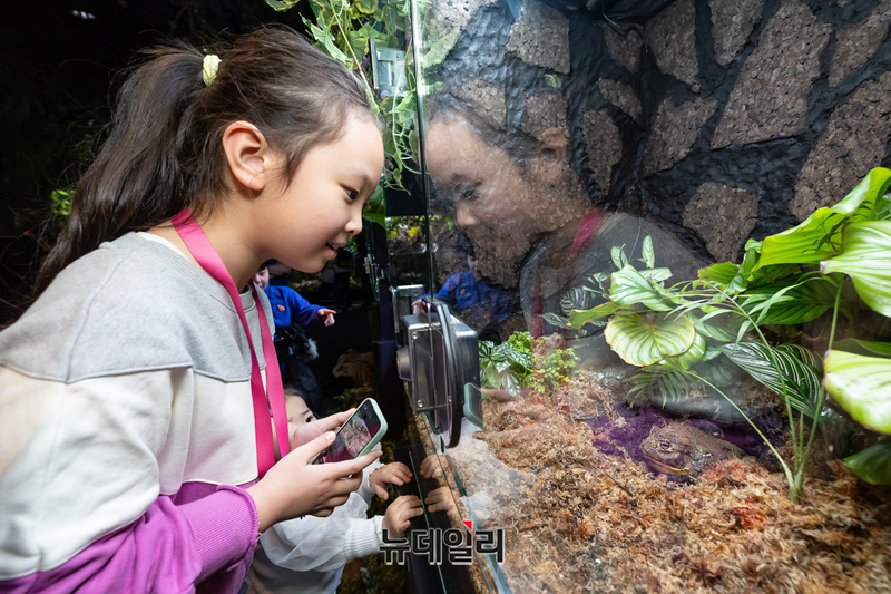 롯데월드 아쿠아리움이 ‘경칩(3월 5일)’을 맞아 양서류를 3월 ‘이달의 생물’로 선정하고, 양서류존에서 열대우림에 서식하는 신규 양서류 3종 밀키프록과 픽시프록, 토마토프록을 새롭게 선보인다.‘밀키프록’은 위기가 닥치면 흰색 점액을 분비해‘우유빛깔 개구리’라는 별칭이 붙었다. 둥근 발 끝을 활용해 나무나 벽을 수월하게 오를 수 있다는 독특한 능력도 지녔다.‘픽시프록’은 열대우림에 서식하는 개구리 중 가장 큰 몸집을 자랑한다. 큰 몸집을 유지하기 위해 종류를 가리지 않는 식성이 특징이다.또 빨갛고 동그란 토마토를 닮은 ‘토마토프록’ 등 롯데월드 아쿠아리움에서는 크기와 색상이 다양한 개구리들을 만날 수 있다. (사진=롯데월드 아쿠아리움)