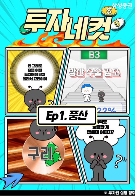 삼성증권은 애니메이션으로 보는 투자정보 영상 '투자네컷'을 삼성증권 공식 유튜브(Samsung POP)을 통해 론칭했다고 18일 밝혔다.전문 용어와 복잡한 수치들로 인해 어렵게 느껴질 수 있는 기업분석 리포트를 4컷 만화 형식을 활용한 숏폼 으로 구성해 쉽고 친근하게 전달한다.‘투자네컷’은 초보 투자자도 부담 없이 투자정보를 이해할 수 있다.‘투자네컷’은 투자 경험이 적은 초보 투자자를 위해 쉽고 재미있는 방식으로 기업과 산업을 설명하는 것이 특징이다. 캐릭터인 '서치'와 '앤츠'가 각 기업을 소개하고, 투자 관점에서 주목해야 할 포인트와 실적 변동 이슈를 짚어준다.금융 상식을 자연스럽게 익히고, 투자에 대한 이해도를 높일 수 있도록 구성한 것이 특징이다. 1분 내외의 스토리 텔링 형식으로 된 숏폼으로 구성돼 언제 어디서나 간편하게 확인할 수 있도록했다.지난 11일 첫 번째로 소개된 '투자네컷'은 방산·비철금속 기업인 풍산이다. 풍산의 주요 사업과 지난 실적, 앞으로 기대되는 기업의 행보를 알기 쉽게 제시했는데, 이틀 만에 25만회가 넘는 조회수를 기록했다.두 번째 '투자네컷'은 네이버로 최근 커머스 시장에 본격적으로 뛰어들며 투자자들의 관심을 받고 있는 배경을 다루고 있다. 네이버 투자네컷도 14일 공개이후 조회수가 21만회를 넘어섰다.삼성증권 관계자는 "어렵고 복잡하기만 한 리서치 리포트가 아닌 모바일을 통해 언제, 어디서나 편안하게 볼 수 있는 리서치 콘텐츠"라며, "숏폼 애니메이션 ‘투자네컷’을 통해 보다 많은 사람들이 금융과 투자에 관심을 갖고 기업을 쉽게 이해할 수 있도록 돕겠다"고 밝혔다.