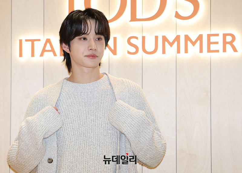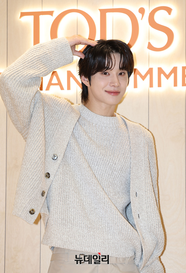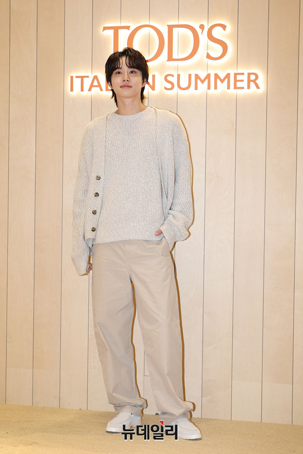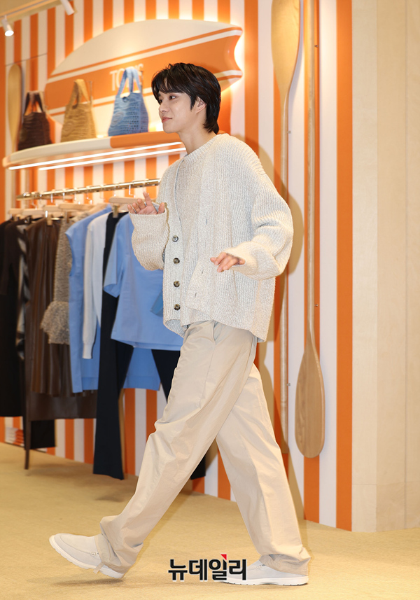 NCT 정우가 4일 오전 서울 서초구 신세계백화점 강남점에서 열린 브랜드 토즈 이탈리안 썸머 팝업 오프닝 행사에서 포즈를 취하고 있다.