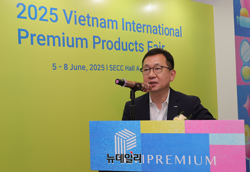 조상현 코엑스 사장이 5일 베트남 호치민 SECC전시장에서 한국무역협회 주관 코엑스 주최로 열린 2025 베트남 국제 프리미엄 소비재전(VIPREMIUM) 개막식에서 환영사를 하고 있다. (호치민=사진공동취재단)