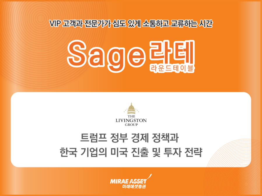 미래에셋증권은 미국 워싱턴 DC 기반의 더 리빙스턴 그룹(TLG)과 함께 ‘세이지(Sage) 라운드테이블’을 성황리에 개최했다고 25일 밝혔다.‘Sage 라운드테이블’은 각 분야 전문가와 고객이 깊이 있는 대화를 나누는 미래에셋증권의 VIP 프라이빗 세미나 시리즈다. 단순한 정보 제공을 넘어 실질적인 맞춤형 실행 전략을 제공한다.이번 행사는 트럼프 정부 출범 이후 관세와 인센티브 등 미국 내 정책 불확실성이 고조되고 있는 가운데 변화하는 비즈니스 환경에 대한 전략적 대응 방안을 공유하고자 기획됐다.미국 진출을 고려 중인 국내 주요 상장사 및 중견기업의 오너와 경영진이 대거 참석했으며, 주한 미 대사관 및 주정부 대표부 협회(ASOK) 관계자도 참석해 생생한 현장 경험을 공유했다.또한 미국의 규제, 예산, 인센티브 정책 특화 컨설팅 역량을 갖춘 TLG는 미국 내 투자 및 입지 전략 수립에 필요한 최신 인사이트를 제공해 참석자들의 호평을 받았다.김화중 PWM부문대표는 “성공한 기업은 기본에 충실하고 언제나 변화에 능동적으로 대응해 왔다”며 “일상화된 미국의 정책 불확실성을 조심스럽게 관망해서만은 안 되며 철저하게 분석하고 전략적 행동을 준비해야 한다”라고 말했다.이어 “앞으로도 미래에셋증권은 ‘현명하고 지혜로운 사람’을 뜻하는 Sage라는 단어처럼 넓은 시야와 깊은 통찰을 고객과 향유하는 투자 파트너가 될 것”이라고 덧붙였다.한편 미래에셋증권은 VIP 고객을 위한 서비스를 입체적으로 확대해나가고 있다. 종합자산관리와 차별화된 세미나 기획에 더해 기업 오너 및 패밀리오피스를 대상으로 가업 승계, 기업 매각, 지배구조 재편 등 고차원적 경영 이슈에 대해서도 자문을 강화해나갈 계획이다.