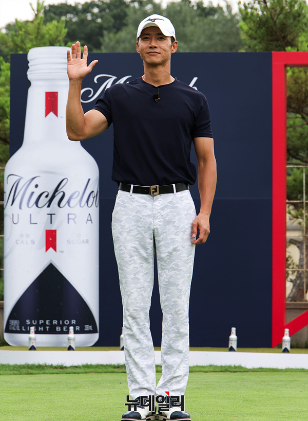 배우 오종혁이 26일 오전 경기 파주시 제이퍼블릭 골프클럽에서 열린 프리미엄 라이트 맥주 미켈롭 울트라의 '울트라 홀 챌린지' 포토세션에서 포즈를 취하고 있다.
