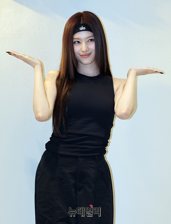 트와이스 사나가 1일 오후 서울 강남구 도산공원에 위치한 프리미엄 라이프스타일 브랜드 알로(alo) 플래그십 스토어에서 열린 포토행사에서 포즈를 취하고 있다.