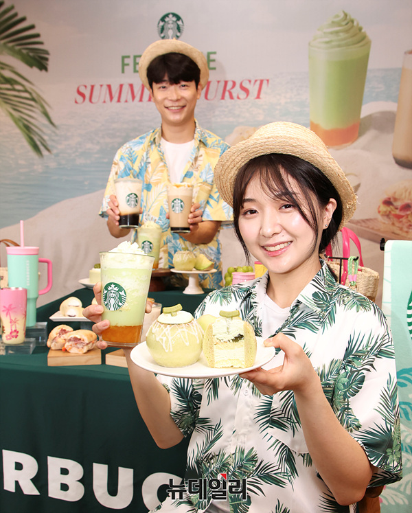 스타벅스 코리아가 17일 오전 서울 용산구 스타벅스 서울역 아카데미에서 두 번째 여름 프로모션을 알리고 있다.