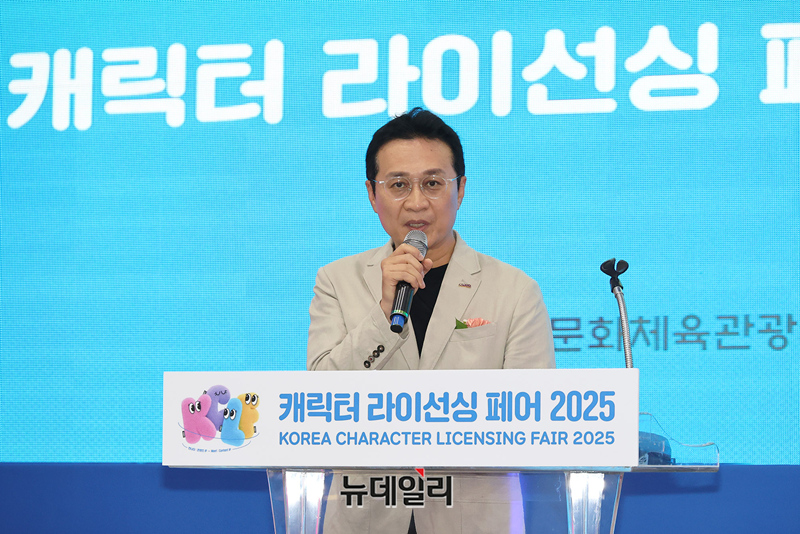 유현석 한국콘텐츠진흥원장 직무대행이 17일 오전 서울 강남구 코엑스에서 열린 '캐릭터 라이선싱 페어 2025' 개막식에서 인사말을 하고 있다.문화체육관광부가 주최하고 코엑스와 한국콘텐츠진흥원이 공동 주관하는 '캐릭터 라이선싱 페어 2025'는 올해로 24회를 맞았다.'만나다:콘텐츠 IP'를 주제로 캐릭터, 게임, 금융, K-POP 등 다양한 분야를 총망라하는 국내 최대 콘텐츠 지식재산(IP) 라이선싱 행사다. 17일 개막식을 시작으로 20일까지 코엑스 A, B1홀에서 개최된다.