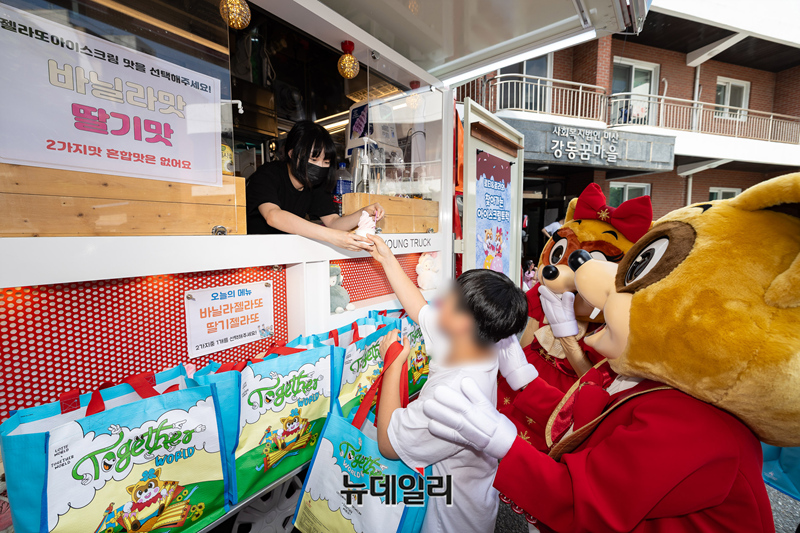 롯데월드(대표이사 권오상) 임직원으로 구성된 샤롯데봉사단이 여름방학을 맞아 24일 아동 청소년 보육시설 '강동꿈마을'에서 더위를 날려줄 사회공헌 활동 ‘아이스크림 트럭’을 진행했다.이날 현장에는 롯데월드 대표 캐릭터 '로티', '로리'가 깜짝 방문해, 폭염에 지친 어린이들에게 시원한 아이스크림과 함께 선물까지 나눠주며 즐거운 추억을 선사했다.특히 아이들의 건강한 여름 나기를 응원하고자 롯데월드 임직원들이 직접 작성한 손 편지를 선물에 담아 따뜻한 마음까지 전달했다.롯데월드는 드림업 캠페인을 필두로 드림티켓, 찾아가는 테마파크 등 취약계층 문화 생활 지원을 위한 다양한 CSR 활동을 지속적으로 전개하고 있다.이와함께 롯데월드 5개 사업장에서 즐거운 추억을 리뷰로 남기면 누적 후기 개수만큼 기부로 이어지는 해피빈 연계 캠페인 '굿 메모리즈'와 같은 색다른 참여형 기부 프로그램도 9월 14일까지 진행한다. (사진=롯데월드)