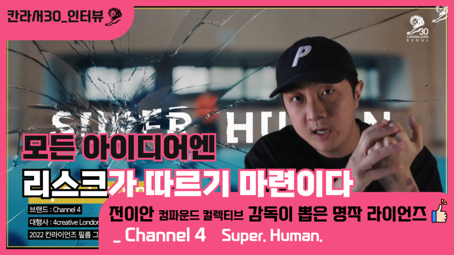 [편집자 주] 올해로 30주년을 맞은 칸라이언즈서울(이하 칸라서) 페스티벌은 한국의 크리에이티비티 산업과 세계를 잇는 가교이자, 광고·마케팅·브랜드 분야 크리에이터들의 도전과 영감을 응원하는 국내 대표 플랫폼으로 자리잡았습니다. 그 역사와 의미를 되새기며, 브랜드와 사회를 더 나은 방향으로 이끄는 '크리에이티비티의 힘'을 다시 한번 조명해보고자 합니다. 이에 브랜드브리프는 칸라서 30주년을 기념해 한국 광고계를 대표하는 크리에이티브 리더 37인의 인터뷰를 진행합니다. 각자의 자리에서 세상을 변화시켜온 이들의 깊이있는 통찰을 통해, 우리가 나아가고자 하는 크리에이티비티의 방향을 함께 고민합니다.전이안 컴파운드 컬렉티브 감독2024 칸라이언즈서울 스피커전이안 감독이 뽑은 명작 라이언즈2022 칸라이언즈 필름 그랑프리브랜드 : Channel4캠페인 : Super. Human.대행사 : 4Creative London"일반적인 패럴림픽 캠페인과는 다르게 유머러스하게 풀어놓은 부분이 좋았습니다. 자칫하다 보면 이슈가 될 수 있고 리스크가 있는 부분임에도 볼드한 용어와 판타지적은 요소들을 굉장히 적절하게 잘 섞은 캠페인이죠."크리에이티브에게 칸라이언즈란?"누군가에게는 목적지의 역할을 하고 또 다른 누군가에게는 경유지의 역할을 함으로써 크리에이티브들에게 성장의 원동력이 되는 행사라고 생각합니다."'좋은 크리에이티브'란?"모든 아이디어에는 일정량의 리스크가 항상 따르고 그 리스크를 잘 계산해서 컨트롤 할 때 좋은 캠페인이 나온다고 생각합니다."칸라서30을 축하하며"칸라이언즈서울의 30주년을 진심으로 축하합니다."한편, 칸라서30 페스티벌은 오는 9월 24일부터 26일까지 광화문 씨네큐브에서 열린다. 올해 칸라이언즈 수상작과 세미나 하이라이트를 비롯해 광고, 마케팅, 브랜딩, 디자인, 기술 등 다양한 분야를 대표하는 글로벌 전문가들이 연사로 무대에 올라 최신 트렌드와 성공 사례를 공유하고 크리에이티브한 인사이트를 나눌 예정이다.[칸라서30 인터뷰 싣는 순서] 김정아 이노션 CCO - 황성필 제일기획 CD - 양수희 퍼블리시스그룹 코리아 CCO - 김낙회 아시아광고연맹(AFAA) 부회장 - 최인아 최인아책방 대표 - 오형균 맥켄코리아 ECD - 신석진 크래프톤 부사장 - 김현 대홍기획 아트디렉터 - 김장한 디마이너스원 공동 대표 - 지로 하야시 덴츠 ECD - 차수연 틱톡 크리에이티브 스트래터지스트 - 강승리 제일기획 프로 - 김아영 이노션 팀장 - 전이안 컴파운드 컬렉티브 감독