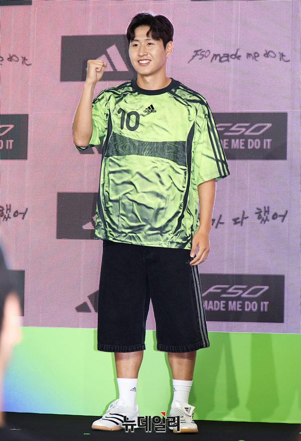 이강인 선수가 2일 오후 서울 용산구 아디다스 더 베이스에서 열린 아디다스 F50 레디언트 블레이즈 발매 기념 'F50가 다 했어: 써머 챌린지' 이벤트에서 포즈를 취하고 있다.