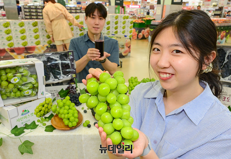 농협 하나로마트를 운영하는 농협유통(대표이사 이동근)이 5일 포도데이(8월 8일)를 앞두고 8월 7일부터 포도(캠벨·샤인머스캣·거봉)를 할인 판매하며 여름철 꼭 먹어야 하는 과일로 추천했다.농사로에 따르면 포도 껍질에는 콜레스테롤을 낮추어 심장병을 예방할 수 있는 성분인 레스베라트롤(resveratrol)은 혈관확장제 역할을 함으로써 협심증과 뇌졸중을 포함한 심장병 발생 가능성을 줄여주어 성인병 예방에 좋다.농협유통 하나로마트 양재점 등에서는 7일부터 캠벨 포도(1.5kg/16,980원), 샤인머스캣 포도(1.5kg/17,980원/행사 카드), 거봉 포도(1.5kg/19,980원)를 할인 판매한다.농협유통 하나로마트에서 판매하는 캠벨 포도와 샤인머스캣 포도는 7일부터 13일까지 할인 행사가 진행된다.샤인머스캣 포도는 행사 카드로(NH·신한·삼성·롯데·우리·카카오페이머니·네이버페이포인트머니·토스페이머니계좌·페이코포인트)결제 시 최대 할인을 받을 수 있다. 거봉 포도는 7일부터 20일까지 할인 판매한다. (사진=농협유통)