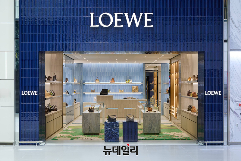 현대면세점이 인천국제공항 제2여객터미널에 스페인 명품 브랜드 '로에베' 매장을 오픈했다.이번 현대면세점 로에베 매장은 스페인에서 수공예로 제작된 파란색 세라믹 파사드로 꾸며져 로에베의 시그니처 아이템들을 소개한다.대표상품은 '퍼즐백(Puzzle Bag)' '해먹백(Hammock Bag)' '‘플라멩코 클러치(Flamenco Clutch)' 등이다. 퍼즐백 출시 10주년을 기념해 램스킨 소재로 제작된 '페더라이트 퍼즐백(Featherlight Puzzle Bag)'은 인천공항점 단독으로 판매된다. (사진=현대면세점)