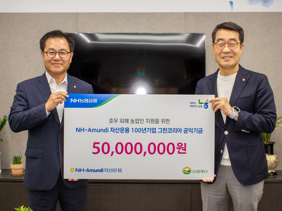 NH-Amundi자산운용은 최근 집중호우로 피해를 입은 농업인들을 지원하기 위해 펀드기금을 활용해 6000만원을 기부했다고 27일 밝혔다.NH-Amundi자산운용은 일부 펀드의 운용·판매보수를 적립해 펀드기금을 조성하고 기부·장학사업·소부장 연구 지원 등 다양한 사회공헌 활동에 활용하고 있다. 현재 필승코리아, 100년기업그린코리아, 장기성장대표기업, 아이사랑 등 5개 펀드에서 기금을 모으고 있다.이번 지원에는 ESG 펀드인 'NH-Amundi 100년기업그린코리아'에서 마련한 기금을 활용했다. 이에 따라 해당 펀드 투자자들도 간접적으로 농업인 수해 복구 지원에 동참하게 됐다.회사는 지난 25일 농협재단에 5000만원을 기부했다. 농협재단은 기부금을 활용해 충남 세종시·경남 거창군 등 피해지역 농업인에게 쌀 가공품 세트를 전달할 예정이다. 농협재단은 지난 2004년부터 장학사업, 농촌 다문화가정 정착지원, 취약농가 물품지원 등 다양한 복지사업을 전개하며 농업인의 생활 안정과 복지 향상에 힘쓰고 있다.NH도농상생운동본부에는 지난 22일 1000만원을 기부해 호우 집중피해지역의 복구와 물품 지원에 도움을 줬다. 해당 단체는 도시와 농촌을 연결하는 상생활동을 목표로 재해재난 지원, 농촌 일손돕기, 쌀 소비촉진 등 다양한 지원 사업을 수행하고 있다.문석근 농협재단 사무총장은 "집중호우로 어려움을 겪고 있는 농업인들의 회복을 위해 소중한 기금을 지원해 준 NH-Amundi자산운용과 투자자 여러분께 깊이 감사드린다"며 "농협재단은 앞으로도 농업인의 곁에서 힘이 될 수 있도록 다양한 장학·복지 사업을 꾸준히 이어가겠다"고 전했다.길정섭 NH-Amundi자산운용 대표이사는 "집중호우로 큰 피해를 입은 농업인들이 하루빨리 일상으로 돌아올 수 있도록 투자자들과 함께 힘을 보태고자 한다"라며 "앞으로도 펀드기금을 사회에 환원하며 금융회사의 사회적 책임을 다하겠다"고 말했다.