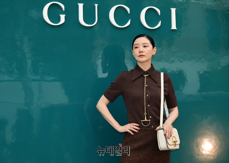 배우 이영애가 2일 오후 서울 강남구 구찌 청담 플래그십 스토어에서 열린 구찌 오스테리아 서울 리뉴얼 오픈행사에 참석해 포즈를 취하고 있다.