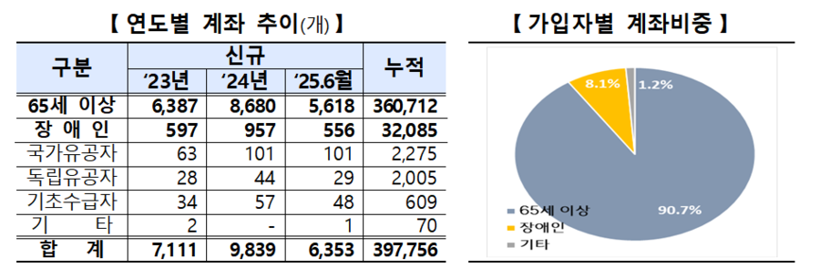 금융당국이 장애인 등 취약계층의 금융 접근성을 높이기 위해 비과세종합저축 계좌의 비대면 개설 절차 마련에 나섰다. 기존에는 영업점을 직접 방문해야 가입할 수 있었지만, 앞으로는 온라인·모바일을 통해서도 계좌를 개설할 수 있게 된다.금융감독원은 8일 "비과세종합저축의 가입 편의성을 확대하고, 금융소외 계층의 안정적인 자산 형성을 지원하기 위해 비대면 계좌 개설 제도를 추진한다"고 밝혔다.비과세종합저축계좌는 고량자, 장애인 등 장의 자산증식을 지원하기 위한 장기적이고 안정적인 세제지원 상품이다. 그러나 비과세종합저축 취급 증권사 대부분이 영업점 방문 가입만 허용하고 있어 장애인 등의 불편 민원이 지속돼왔다.현재 비대면종합저축 계좌 취급 23개사 증권사 중 삼성·우리·키움증권 등 3개사만 비대면 가입이 가능하다. 고객이 증빙서류를 우편이나 전자우편, SMS 등으로 증권사에 제출하면 담당 부서에서 진위확인 후 개설해주는 방식이다.반면 20개사 증권사는 가입자격을 확인할 수 있는 증빙서류를 준비해 영업점을 방문하면 영업점 직원이 진위확인 후 가입할 수 있다.지난 6월말 기준 증권사 비과세종합저축 계좌는 총 39만8000개로 고령자, 장애인 등을 중심으로 신규 가입이 꾸준히 증하하고 있다. 65세 이상 고령자 계좌가 36만1000개로 전체의 90.7%의 해당할 정도로 가장 많고, 영업점 방문에 어려움을 겪는 장애인 계좌는 3만2000개 수준이다.이에 금감원은 금융투자협회와 증권업권과 적극적인 논의를 진행한 결과 증권사는 비과세종합저축에 대한 비대면 가입절차를 마련하기로 결정했다.영업점 방문 가입에 어려움을 겪는 장애인을 대상으로 비대면 가입을 우선 허용하되 단계적으로 적용대상 확대, 가입절차 고도화 등을 추진할 계획이다.또 올 4분기부터 준비된 증권사 중심으로 순차적으로 개시하고, 2026년까지 비과세종합저축을 취급 중인 전 증권사가 장애인 비대면 가입절차를 구축할 예정이다.