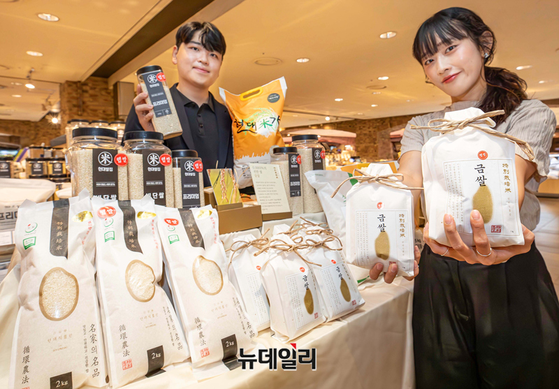 현대백화점이 압구정본점 등 전국 점포의 식품관에서 올해 첫 수확한 햅쌀을 판매한다.이번에 선보이는 햅쌀은 연간 한정 수량만 생산되는 유기농 '현대쌀집 금쌀'과 전남 보성 간척지에서 친환경 유기농법으로 재배한 프리미엄쌀 '특별재배미', 생육기간이 짧아 친환경적이면서 구수한 향이 특징인 '현대미가 빠르미향'이다.판매 가격은 현대쌀집 금쌀 1만 9,800원(1kg), 특별재배미 4만 7,900원(3kg), 현대미가 빠르미향 3만 8,900원(5kg)이다. (사진=현대백화점)