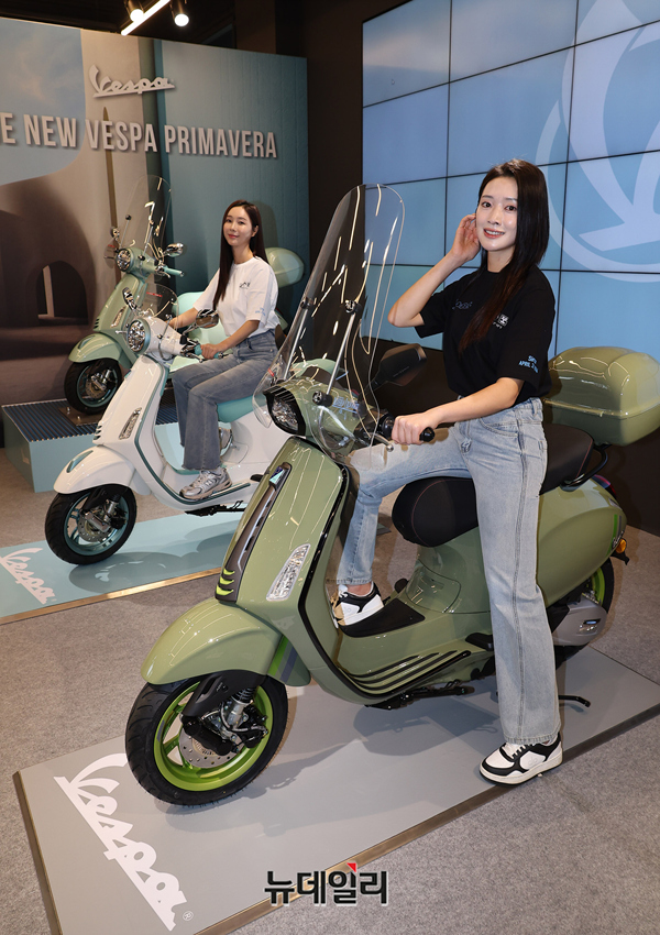 이탈리아 아이코닉 모터사이클 브랜드 베스파가 12일 오전 서울 강남구 베스파 모토플렉스 서울점에서 신모델을 선보이고 있다.이날 베스파는 신모델 프리마베라, 스프린트, 스프린트 오피치나8, 스프린트 테크를 공개했다.