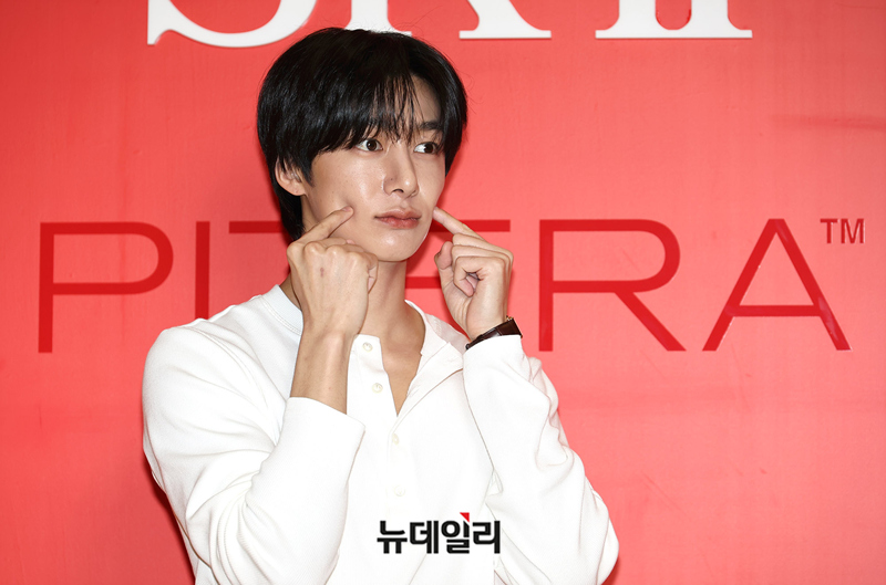 몬스타엑스 형원이 12일 오후 서울 송파구 롯데백화점 잠실점 에비뉴엘에서 열린 'ONE&ONLY SK-2' 팝업스토어 오픈행사에 참석해 포즈를 취하고 있다. 팝업은 12일부터 21일까지 오픈.