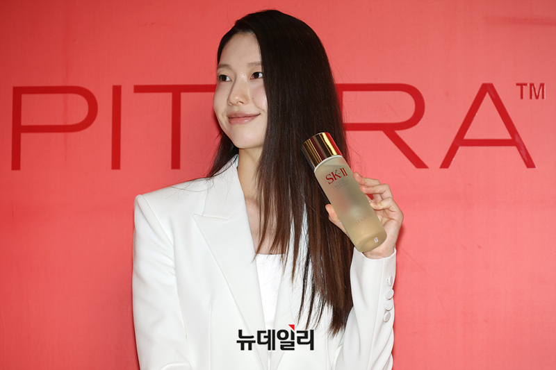 모델 김진경이 12일 오후 서울 송파구 롯데백화점 잠실점 에비뉴엘에서 열린 'ONE&ONLY SK-2' 팝업스토어 오픈행사에 참석해 포즈를 취하고 있다. 팝업은 12일부터 21일까지 오픈.
