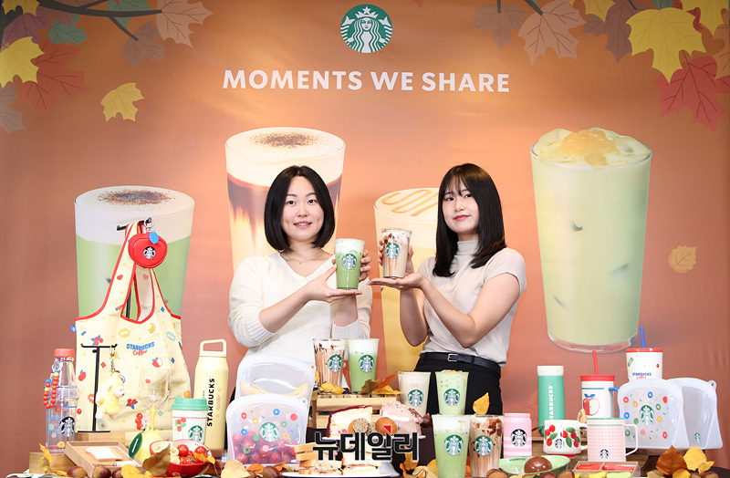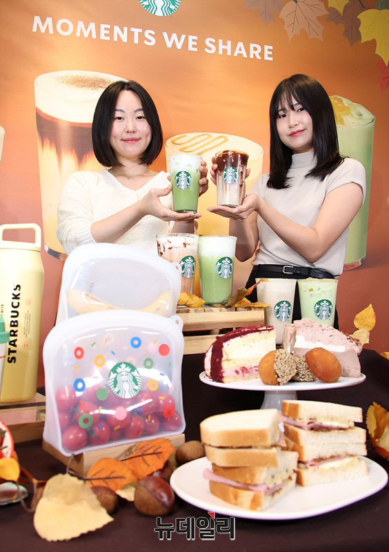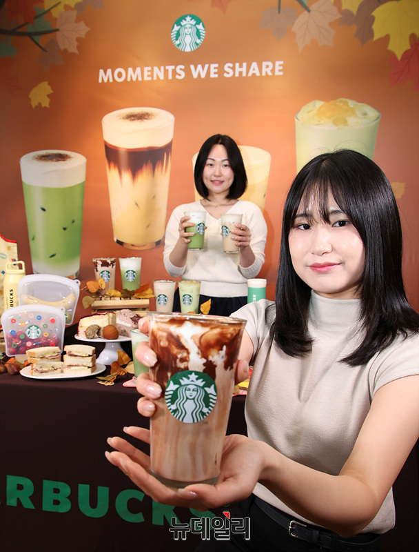스타벅스가 18일 오전 서울 중구 한국프레스센터점에서 가을 베스트셀러 음료를 선보이고 있다.